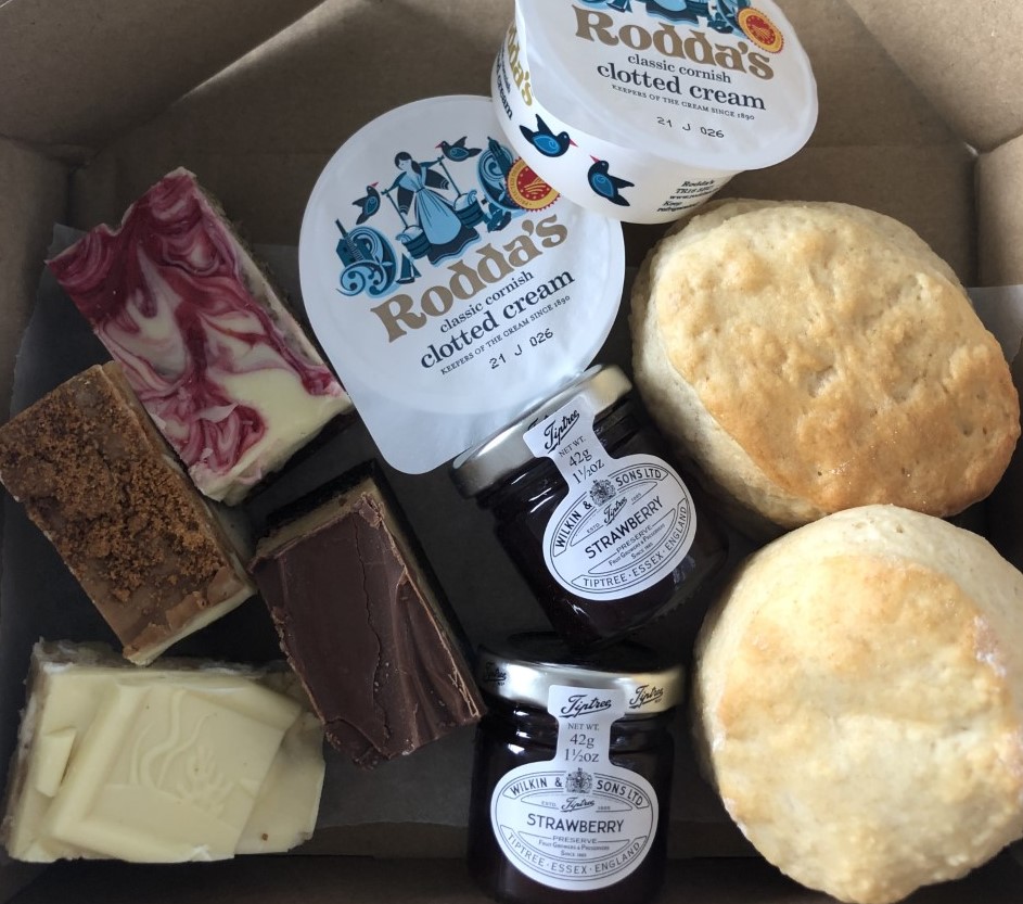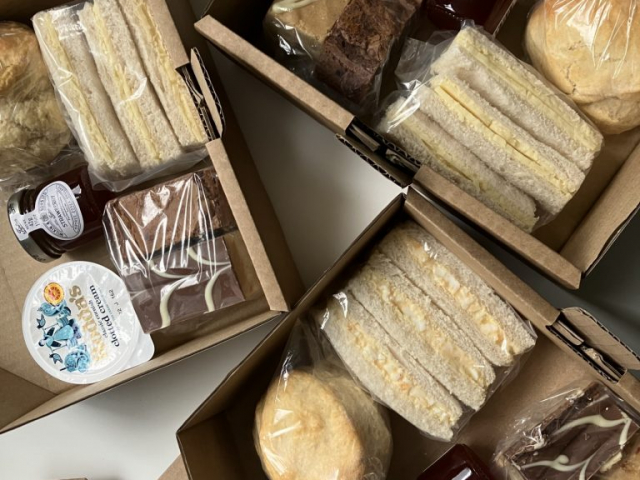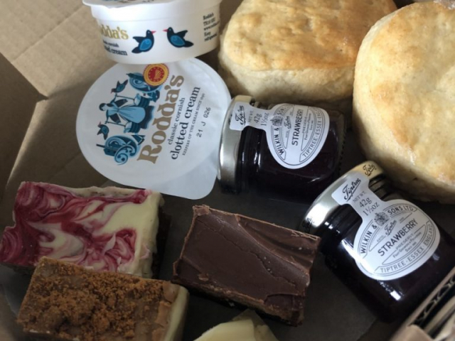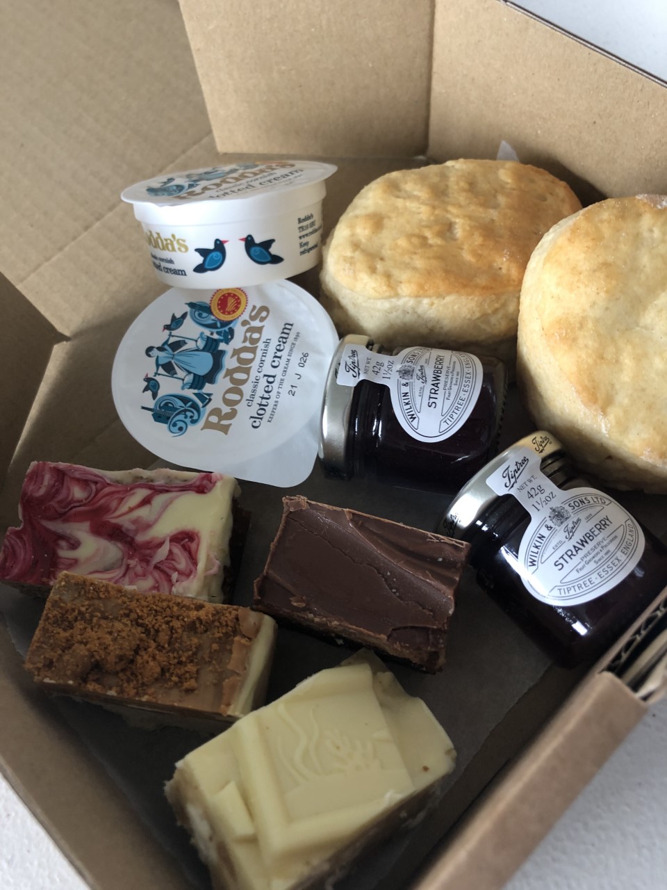 Our cream teas are a delicious alternative to the traditional afternoon tea. The cream tea is presented in a box for 2 people, perfect for a picnic or a lovingly thought of gift.