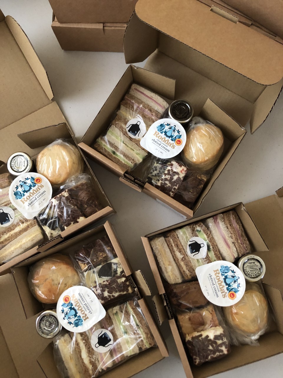 Individual boxes are £13 each and have a minimum order of 2 boxes. The boxes contain the same as the afternoon tea trays but do not contain the confectionery treat.