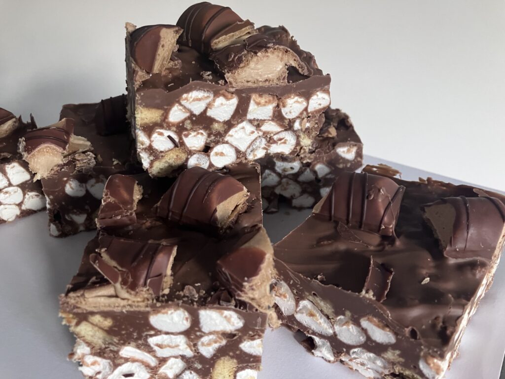 Kinder bueno milk chocolate rocky road Return to Traybakes gallery By Jake Melton Published 5th May 2024 Full size is 1920 × 1440 pixels