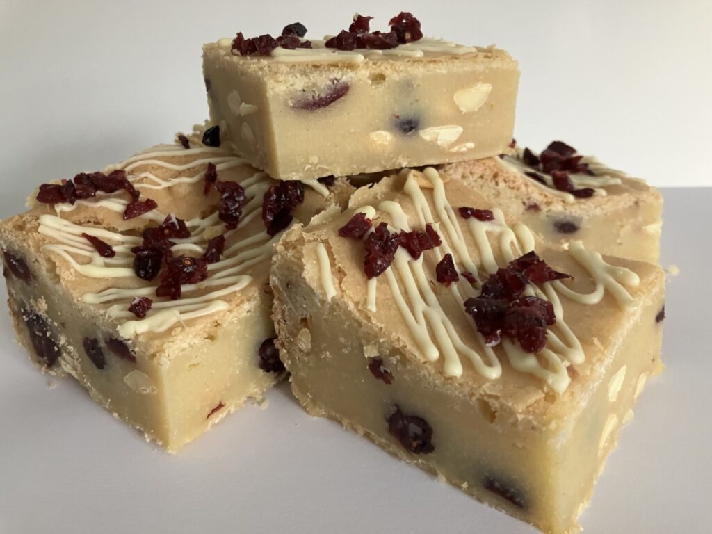 White chocolate and cranberry blondie